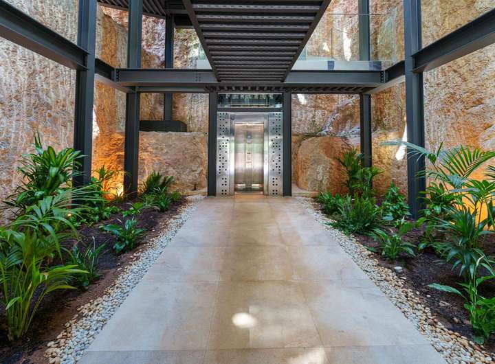 Der majestätische Eingangsbereich, der sich eindrucksvoll in den Berg erstreckt, ist zweifellos ein Meisterwerk der Einzigartigkeit und sucht in seiner Klasse seinesgleichen. Der Bauträger hat unermüdlich daran gearbeitet, hochwertige Materialien zu verwenden und eine durchdachte Raumaufteilung zu schaffen, die durch eine makellose Bauausführung ergänzt wird.