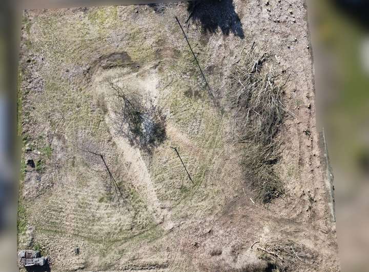 Seitlich schneidet eine Telefonleitung eines der Grundstücke.