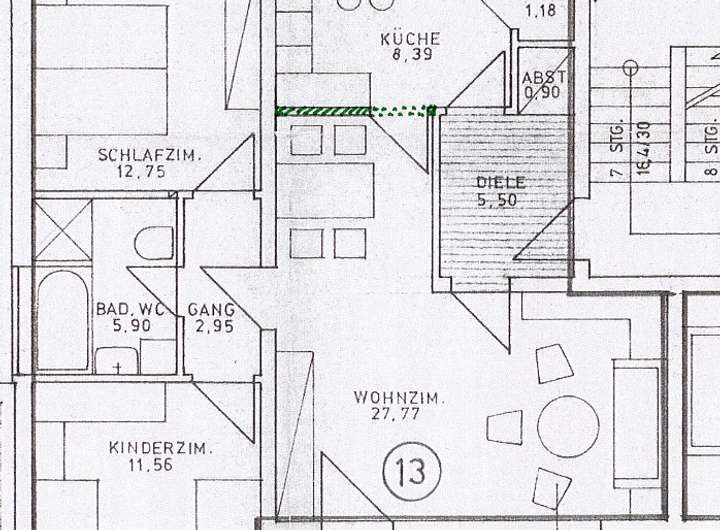 Die Einbauküche kann von den Vormietern abgelöst werden.