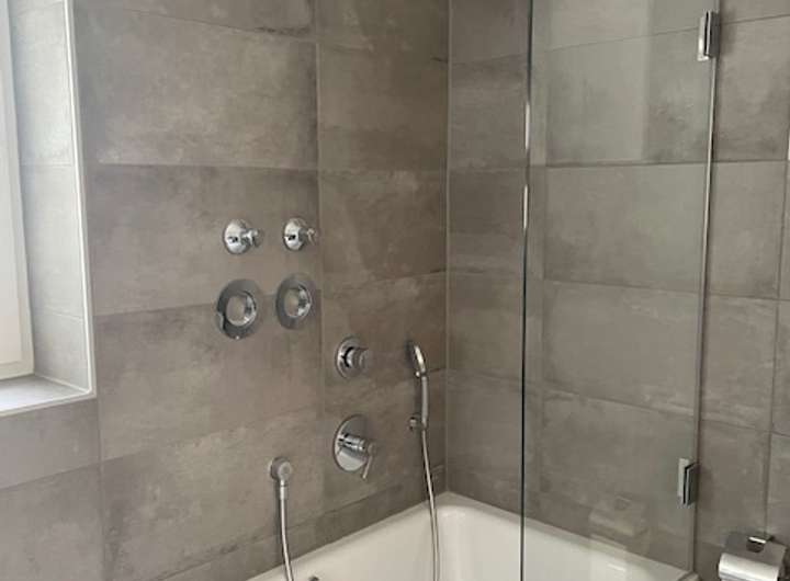 - Bad mit Badewanne und Decken-Dusche, Handtuch-Heizkörper