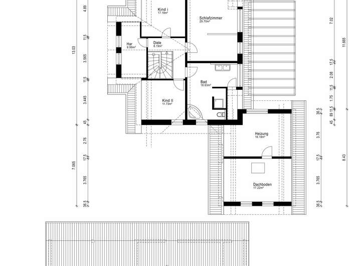 Der Spitzboden ist über eine Einklappleiter zugänglich. Hier befindet sich die Heizungsanlage und ein Teil der Haustechnik. Der Spitzboden verfügt über volle Stehhöhe und bietet zusätzliche Nutzfläche.