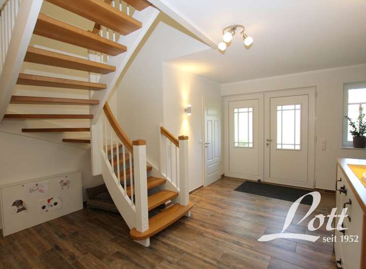 Besonders hervorzuheben ist die moderne Smart-Home-Technik und Fußbodenheizung im gesamten Haus sowie die auf dem Dach installierte Photovoltaikanlage und die Solar-Thermie. In Verbindung mit der durchdachten Raumaufteilung und den großzügigen, hellen Räumen überzeugt das Verkaufsobjekt ausnahmslos.
