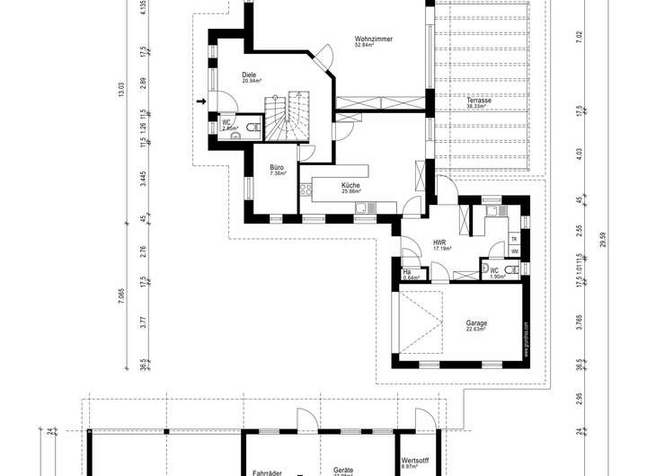 Die Nutzfläche der Remise beträgt ca. 96 m².