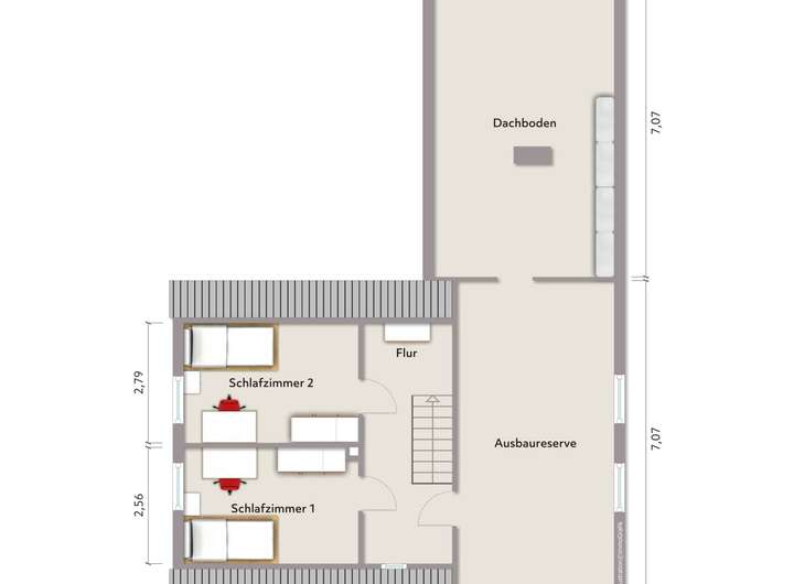 DG: 2 Schlafzimmer, Flur; Ausbaureserve u. Bodenraum