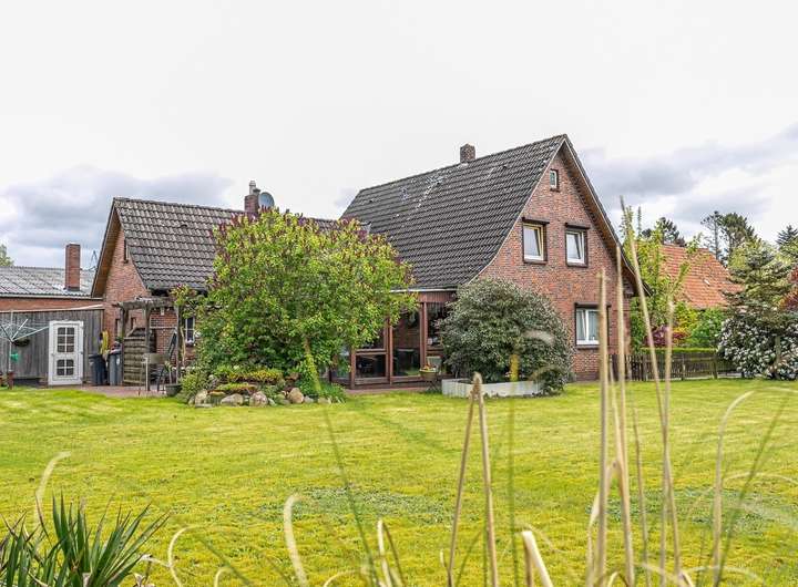Der Gartenbereich ist sehr großzügig gehalten und besticht durch die Bepflanzung aus heimischen Sträuchern und Gräsern. Eine Teilung für einen Bauplatz wäre denkbar.