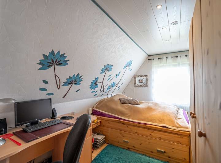 Im oberen Wohnbereich befinden sich zwei Schlafzimmer und die großzügige Ausbaureserve.