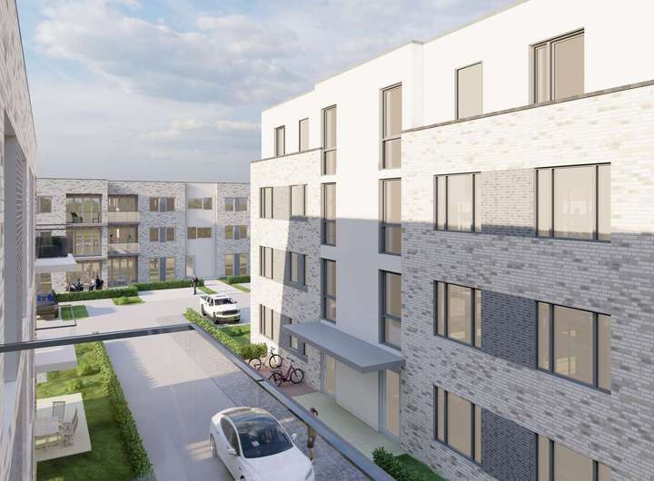 Im Mönkhofer Weg 179 entstehen insgesamt 31 Eigentumswohnungen, aufgeteilt auf vier architektonisch moderne Baukörper.