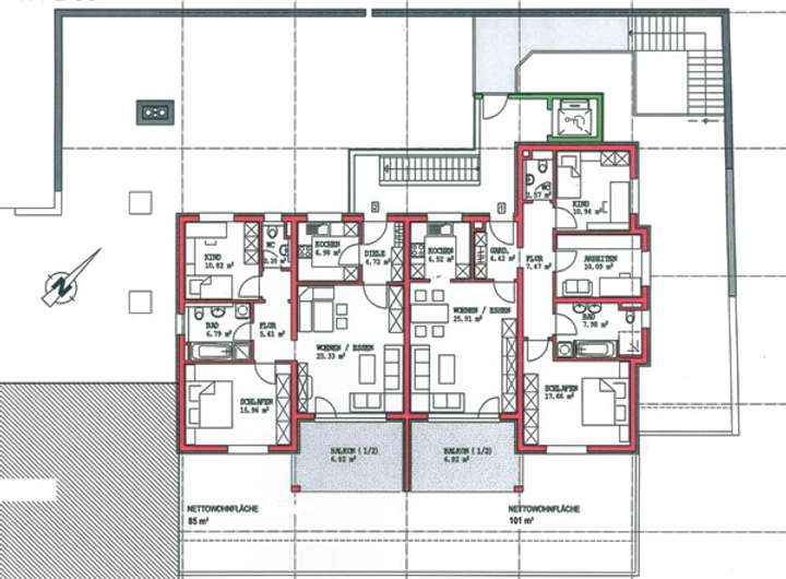 Wir bieten kompakte 2,5- bis 4-Zimmer-Wohnungen von 80 m² bis zu weiträumigen Penthouse-Wohnungen mit 105 m² an. Die Gesamtwohnfläche beträgt 550 m²; Grundstücksfläche ca. 678 m².