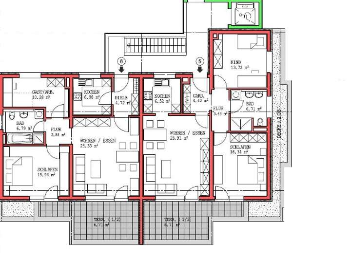 Zum Angebot stehen 6 moderne, lichtdurchflutete Einheiten mit großzügigen Terrassen bzw. Balkonen.