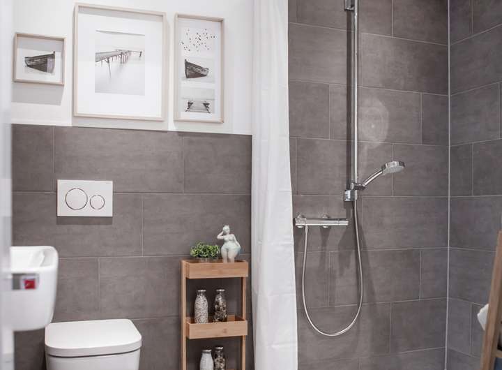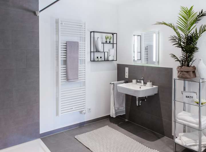 -Ein modernes Bad mit großer bodengleicher Dusche