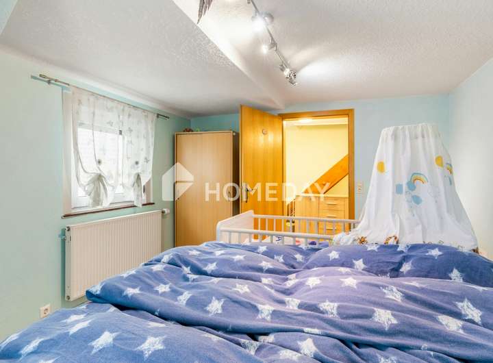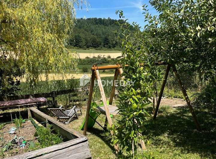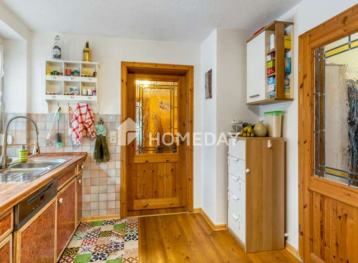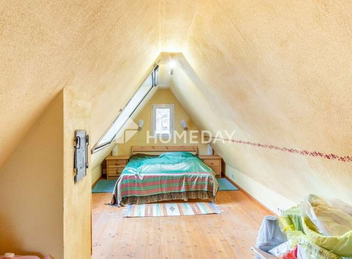 Das charmante Einfamilienhaus im gepflegten Zustand steht in attraktiver, sehr ruhiger Lage. Auf dem ca. 304 Quadratmeter großen, nicht einsehbaren Grundstück befinden sich neben dem Haus ein Vorgarten, eine Scheune und eine Garage. Ein rund ein Kilometer entfernter Schrebergarten gehört ebenfalls zum Grundstück.