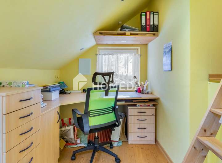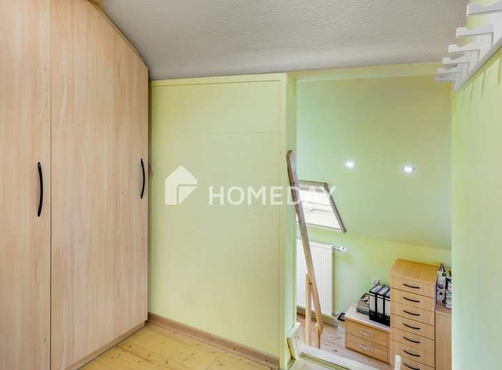 • Eine Ölzentralheizung aus dem Jahr 2009 versorgt das Haus über Flachheizkörper mit Wärme. Die letzte Heizungssanierung erfolgte 2021. Ferner besitzt der Kaminofen eine Wassertasche für die zusätzliche Beheizung.
