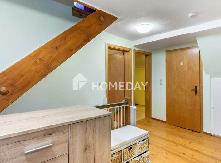 Die Immobilie hat eine Größe von ca. 130 Quadratmetern Wohnfläche, die sich auf sechs Zimmer verteilt. Im Vollkeller befinden sich weitere Räume.