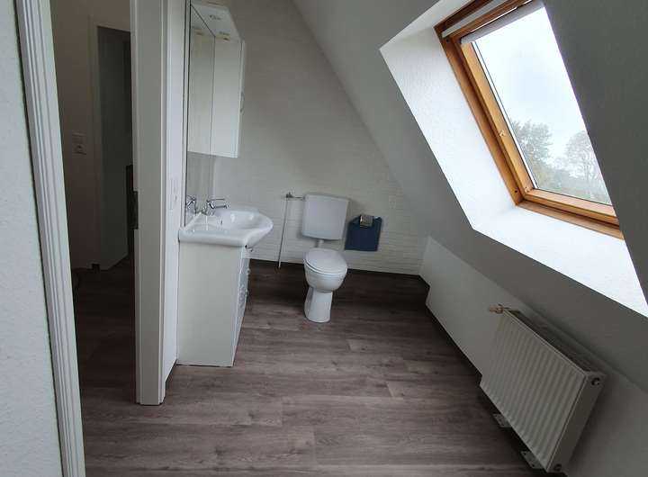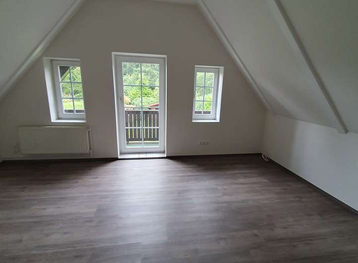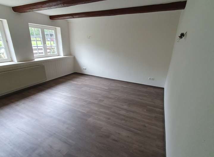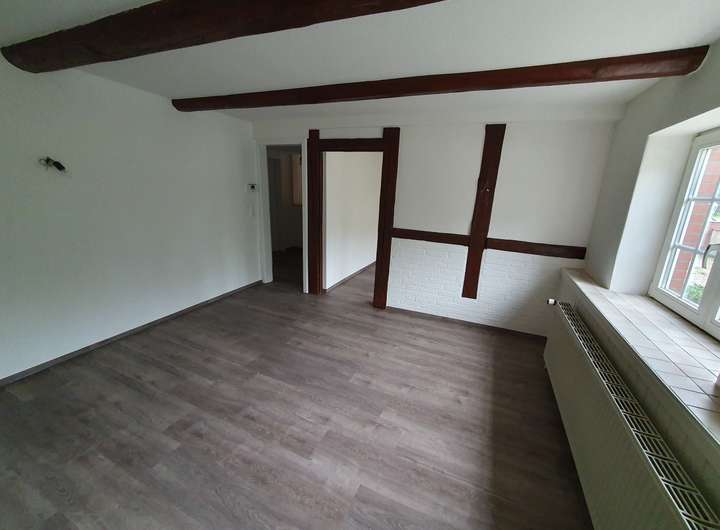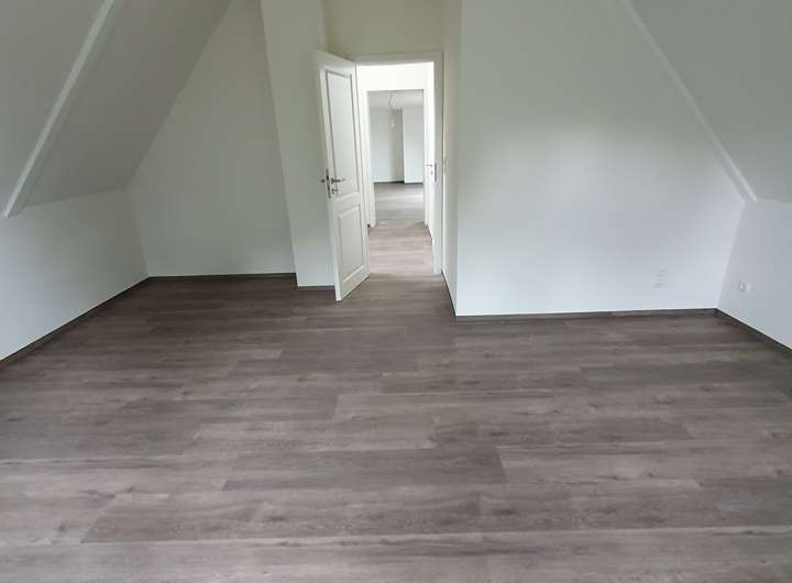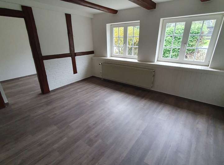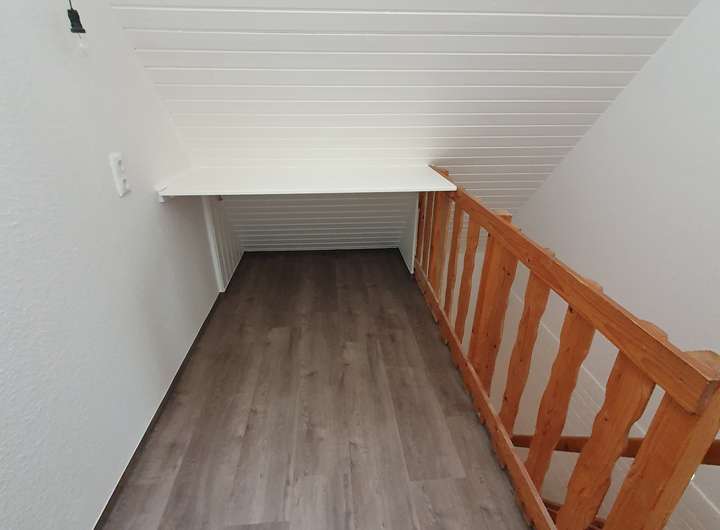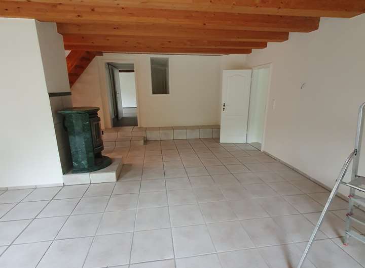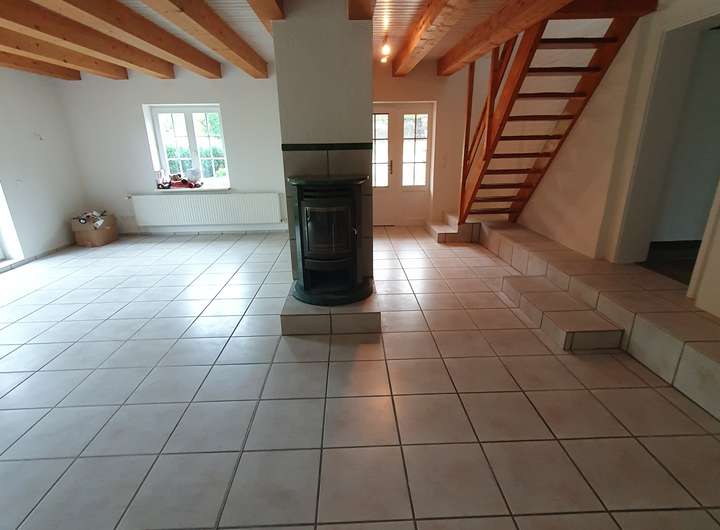 Das Haus ist ausgestattet mit einem großen offenen Wohnzimmer mit Kaminofen und Terrasse im Erdgeschoss. Dahinter liegt ein Schlafzimmer mit einem en suite Badezimmer. Auch im Erdgeschoss liegt ein weiteres großes Zimmer und ein kleines davon abgehendes Arbeitszimmer. Weiterhin die Küche mit neuen Einbaumöbeln und ein weiteres Duschbad. Im Obergeschoss befinden sich zwei große Schlafzimmer, eines mit einem großen Balkon zum Garten. Weiter ein großer Toilettenraum. Im Bereich der Treppe gibt es eine Galeriefläche, die z. B. als Arbeitsecke/Büroecke genutzt werden kann.