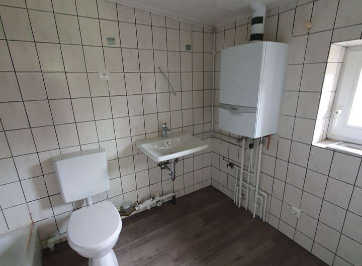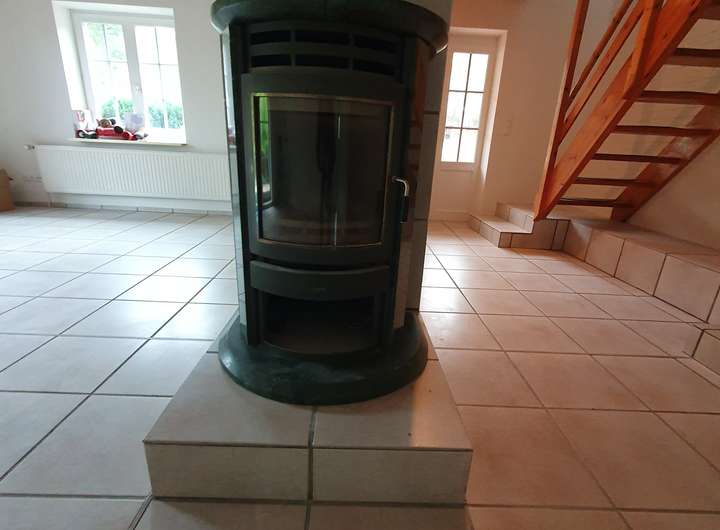 Das Haus wird über eine Flüssiggasheizung beheizt. Die Fußbodenbeläge sind Fliesen im Wohnzimmer und in den Bädern und sonst im ganzen Haus neu verlegte Vinylfußböden.