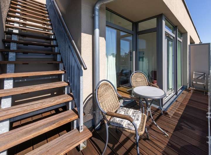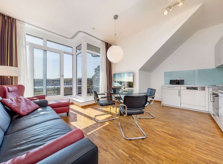 3. Obergeschoss, Aufzug fährt bis in TG – SUV tauglich – 2 m Durchfahrtshöhe -, geradlinige und geräumige Raumaufteilung, Nord-Süd-Ausrichtung, ausschließlich bodentiefe Glaselemente, offenes Wohnen in Süd-Westausrichtung, Küche in L- Form mit GSP, Terrassenschiebeelement, Bad mit Whirlwanne und Waschmaschine, Ankleide bzw. Abstellraum vom Schlafzimmer begehbar, 2 Dachterrassen, Strandkorb, Parkett, Fußbodenheizung, Renovation Frühjahr 2024 – KEIN SANIERUNGSRÜCKSTAU! vollständig neu gemalert, Parkett überarbeitet, Dachterrassendielen (Meranti) und Außentreppenstufen renoviert (gereinigt und sorgfältig aufgearbeitet)
