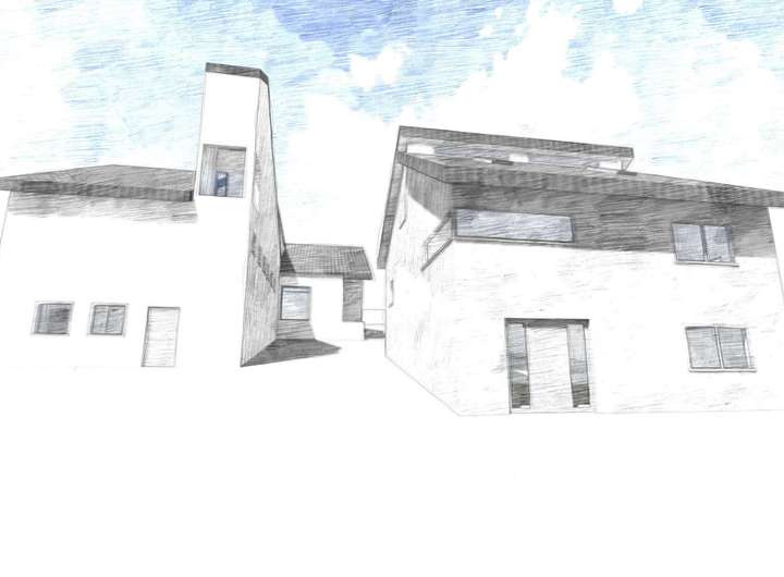 Das westlich liegende ehemalige evangelische Gemeindezentrum wird zu 4 Komfort-Wohnungen umgebaut.