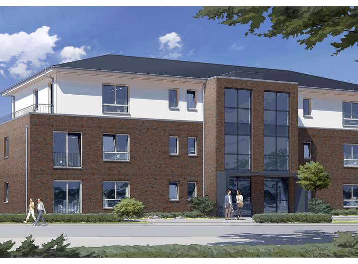 Hier entstehen durch die "von Rahden Wohnbau" hochwertige Eigentumswohnungen mit drei Zimmern. Diese weisen eine Grundfläche von ca. 110 m² - 140 m² auf.