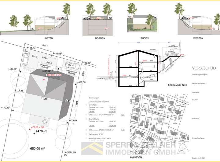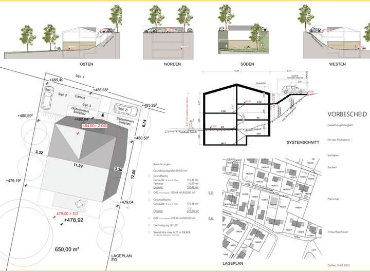 Durch die Ausrichtung nach Süden erhalten die Wohnräume viel natürliche Sonneneinstrahlung, was zu einer angenehmen und energieeffizienten Wohnatmosphäre beiträgt. Zudem ermöglicht die Hanglage interessante architektonische Gestaltungsmöglichkeiten, indem man das Doppelhaus terrassenförmig an den Hang anpasst und so verschiedene Ebenen und Höhen schafft.