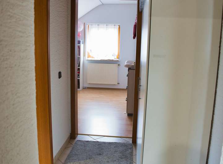 Durch die Haustüre betreten Sie den Hausflur, von dem aus eine Treppe in die oberen Etagen führt.