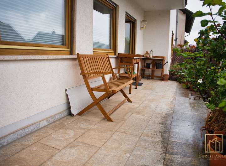 Die Obergeschosswohnung verfügt ebenso über ca. 93m², verteilt auf 3 Zimmer, Küche und Tageslichtbad mit Wanne und einem Balkon.