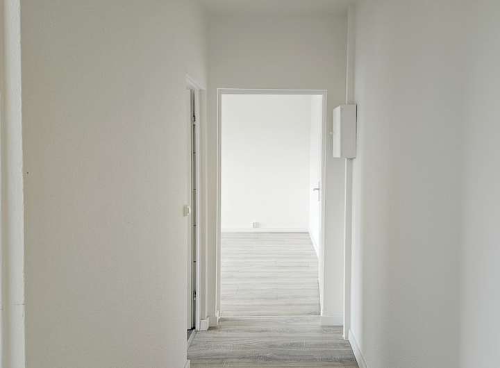 - Laminat - Bodenbelag und Raufasertapete in den Wohnräumen