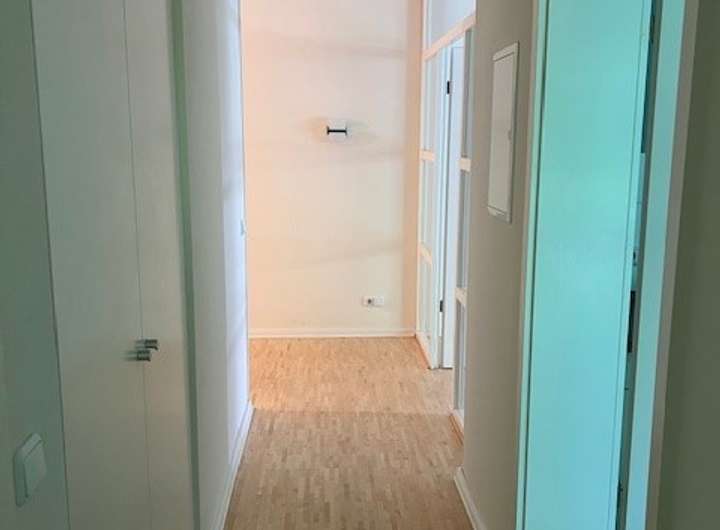 Beim Betreten der Wohnung empfängt Sie ein einladender Flur, der durch einen integrierten Abstellraum und Einbauschränke ausreichend Platz für Garderobe und Stauraum bietet.