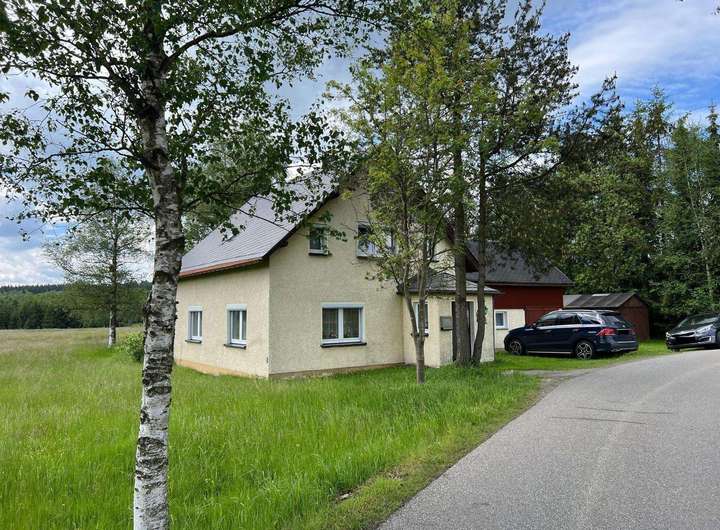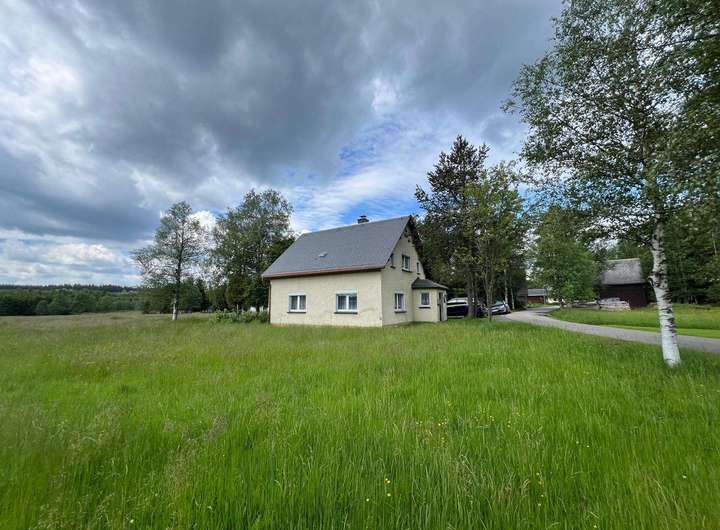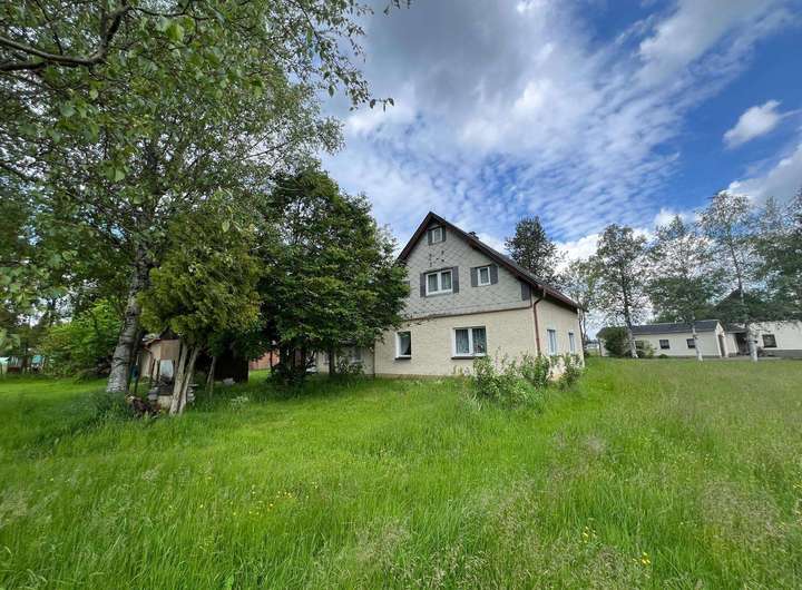 Zum Haus gehört ein ca. 3.450 m² großes Grundstück. Absolutes Highlight ist hier der unverbaute Blick ins Grüne und auf atemberaubende Mittelgebirgslandschaft.