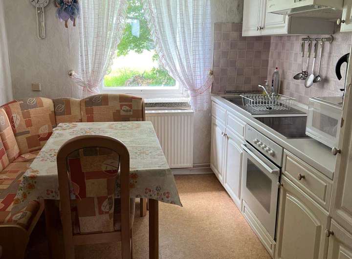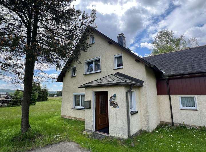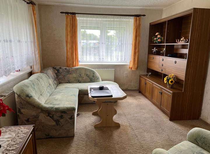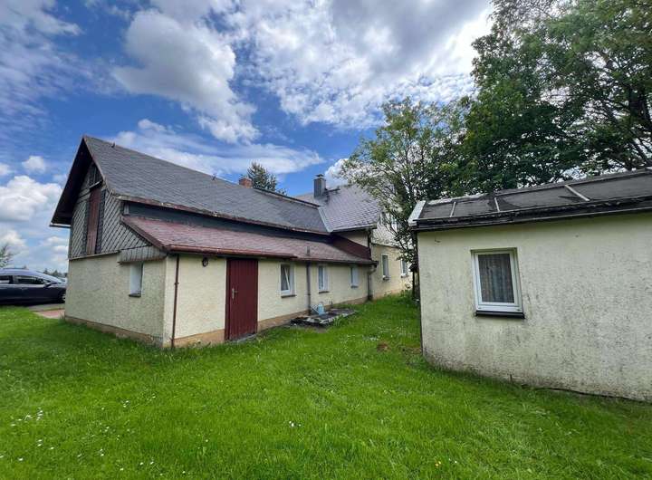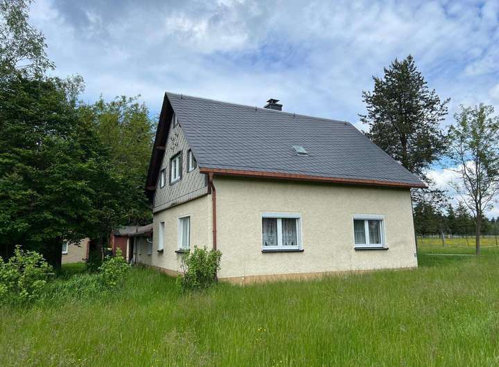 Zum Verkauf steht hier dieses kleine Einfamilienhaus in Kühnhaide. Sie betreten das Haus über einen kleinen Windfang und stehen dann anschließend im zentralen Flur. Von hier aus sind im Erdgeschoss die Küche sowie das zweigeteilte Wohnzimmer zu erreichen, welches sich durch die Trennung super in Wohnzimmer und Essbereich eingliedern lässt. Im Wohnzimmer besteht die Möglichkeit einen Kamin anzuschließen, welcher an kalten Tagen für wohlige Wärme sorgt.