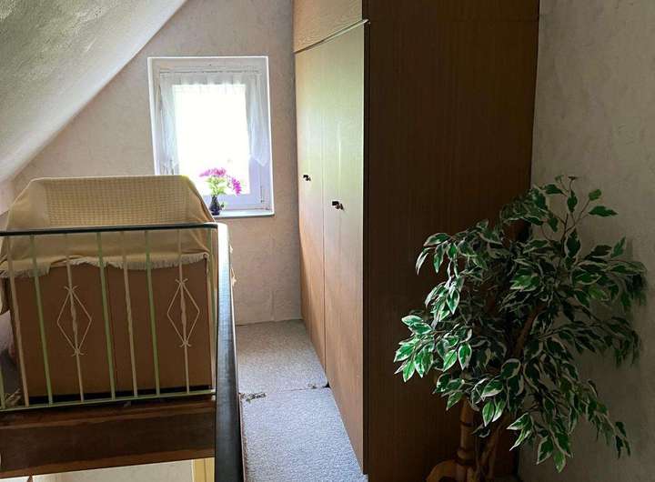 Weiterhin befindet sich im Erdgeschoss der Heizraum, in welchem eine 1997 eingebaute Ölheizung ihren Dienst verrichtet, sowie eine separate Toilette, das Badezimmer mit Wanne und WT sowie diverse Lagermöglichkeiten und direkter Zugang zur Garage. Über eine massive Treppe erreichen Sie das ausgebaute Dachgeschoss, hier befinden sich zwei große Zimmer, welche als Schlaf- und Kinderzimmer genutzt werden können, zwei kleine Kammern können weiterhin z.B. als Arbeits- oder Gästezimmer genutzt werden. Das Dachgeschoss des Anbaus ist nicht ausgebaut, hier befindet sich ein großer Dachboden, welcher genügend Stauraum bietet, aber auch eine Ausbaureserve darstellt um die Wohnfläche hier zu vergrößern.