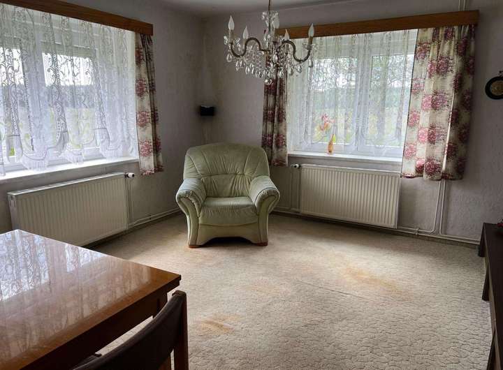 Grundsätzlich befindet sich das Haus in einem gepflegten Zustand, so wurden die Dächer in den 90er Jahren bzw. zu Beginn der 2000er neu eingedeckt und der Großteil der Fenster wurde mit doppeltverglasten Kunststofffenstern mit Rollläden ersetzt. Die vorhandene Ölheizung wird regelmäßig gewartet und ist funktionsfähig. Dennoch bedarf es umfangreicher Sanierungsmaßnahmen um das Haus dem heutigen Wohnstandard anpassen zu können, so ist eine Erneuerung der elektrischen Anlage sowie eine Trockenlegung des Objektes notwendig. Auch der Einbau eines modernen Badezimmers sowie Maler- und Fußbodenbelagsarbeiten und das Anschließen einer vollbiologischen Kläranlage sind hier erforderlich.