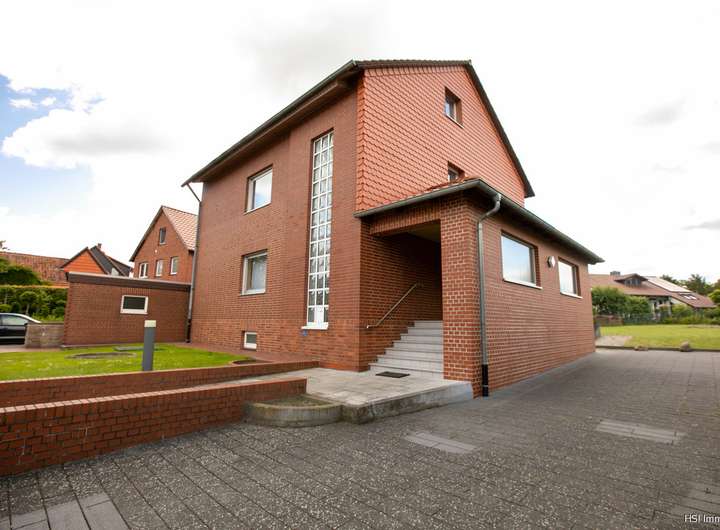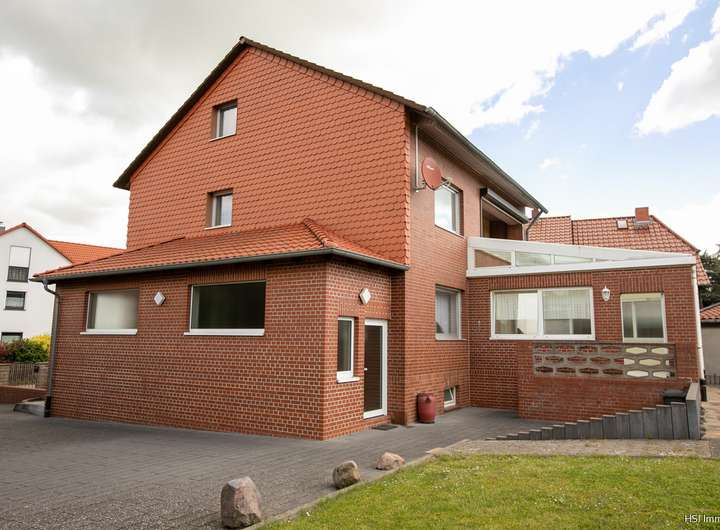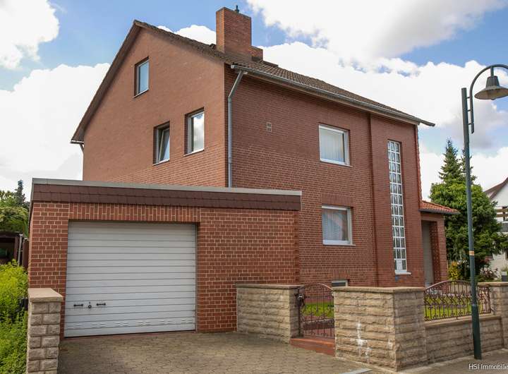 Das 2-geschossige Haus mit Kaminanschluss wurde in Massivbauweise mit Vollklinkern und Satteldach erstellt und verfügt über einen großen Garten.