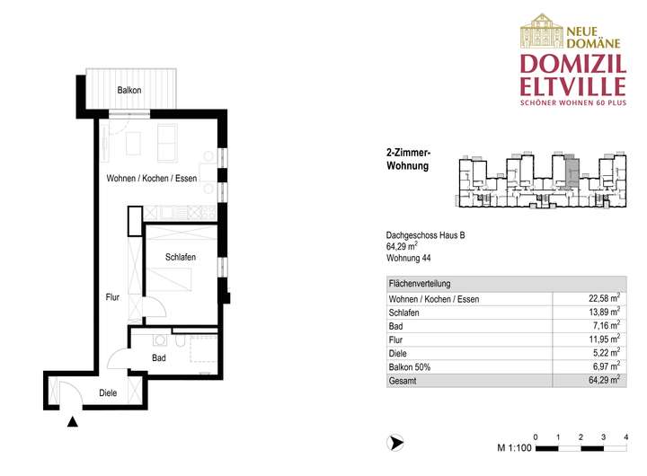 Wenn das aktive Berufsleben zu Ende geht und die Kinder aus dem Haus sind, beginnt für viele Menschen ein neuer Lebensabschnitt mit neuen Plänen und Wünschen. Das DOMIZIL ELTVILLE bietet hierfür ein hochwertiges Wohnquartier, das den besonderen Bedürfnissen der Generation 60 plus gerecht wird: Stilvolle und komfortable Neubauwohnungen im denkmalgeschützten Umfeld mit attraktiven Gemeinschaftseinrichtungen und einem vielfältigen Serviceangebot.
