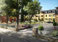 Etwas von der Straße zurückgenommen entsteht das Domizil, ein langgestreckter Wohnflügel, dessen Architektur von der historischen Bebauung inspiriert ist und einen Altbau integriert. Hier bieten 53 Eigentumswohnungen und attraktive Gemeinschaftsflächen sowie Räumlichkeiten für Betreuungs- und Pflegedienste hochwertigen Lebensraum für ältere Menschen, die Unabhängigkeit und Gemeinschaft gleichermaßen schätzen.