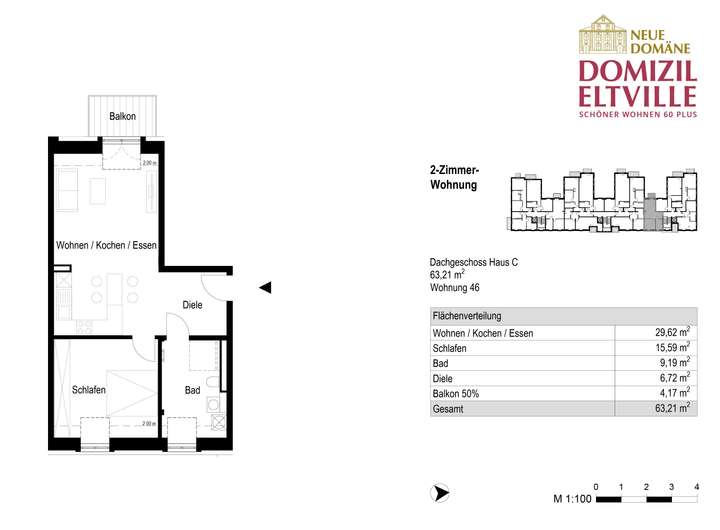 Wenn das aktive Berufsleben zu Ende geht und die Kinder aus dem Haus sind, beginnt für viele Menschen ein neuer Lebensabschnitt mit neuen Plänen und Wünschen. Das DOMIZIL ELTVILLE bietet hierfür ein hochwertiges Wohnquartier, das den besonderen Bedürfnissen der Generation 60 plus gerecht wird: Stilvolle und komfortable Neubauwohnungen im denkmalgeschützten Umfeld mit attraktiven Gemeinschaftseinrichtungen und einem vielfältigen Serviceangebot.