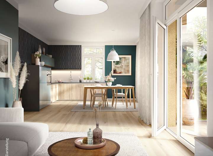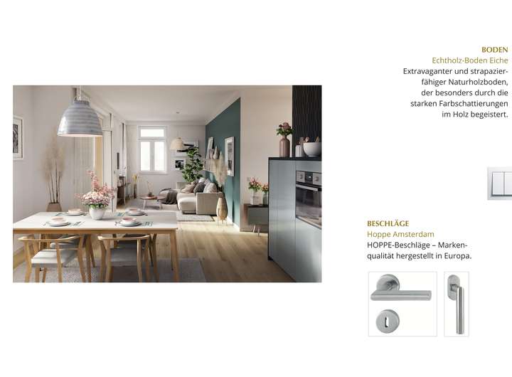 Wohnfläche sind allesamt großzügig geschnitten. Sie verfügen durchweg über Balkone, Terrassen oder Loggien. Alle Räumlichkeiten sind mit dem Aufzug erreichbar – ebenso die bequem befahrbare Tiefgarage.
