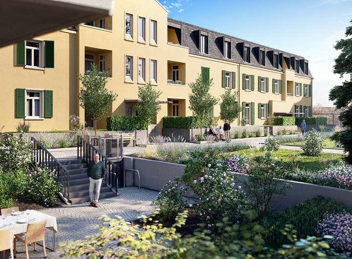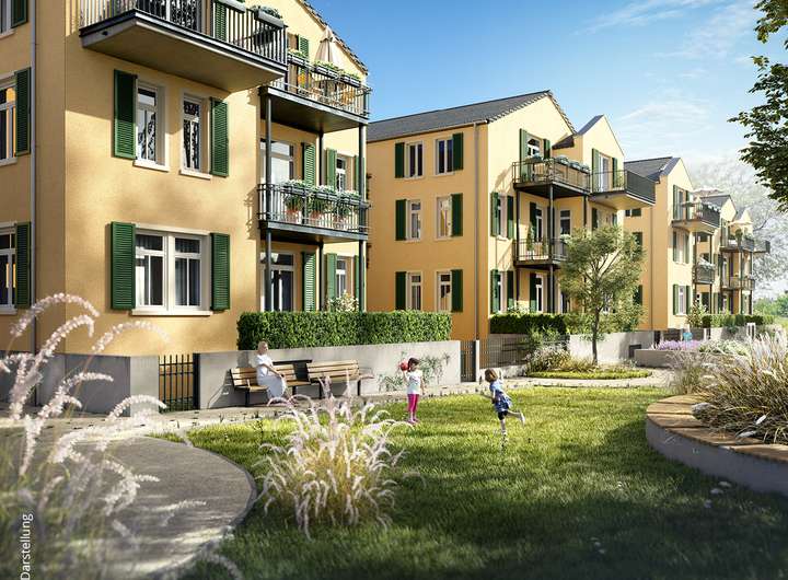 bilden mit Höfen und Grünflächen ein ruhiges Quartier mit hoher Aufenthaltsqualität.