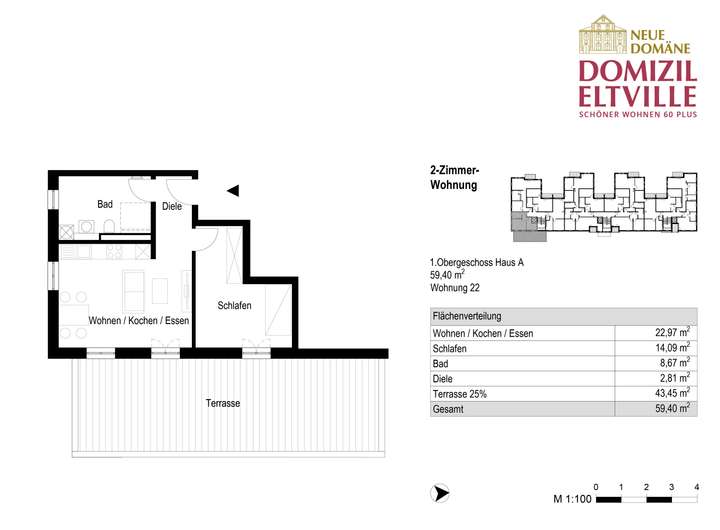 Wenn das aktive Berufsleben zu Ende geht und die Kinder aus dem Haus sind, beginnt für viele Menschen ein neuer Lebensabschnitt mit neuen Plänen und Wünschen. Das DOMIZIL ELTVILLE bietet hierfür ein hochwertiges Wohnquartier, das den besonderen Bedürfnissen der Generation 60 plus gerecht wird: Stilvolle und komfortable Neubauwohnungen im denkmalgeschützten Umfeld mit attraktiven Gemeinschaftseinrichtungen und einem vielfältigen Serviceangebot.