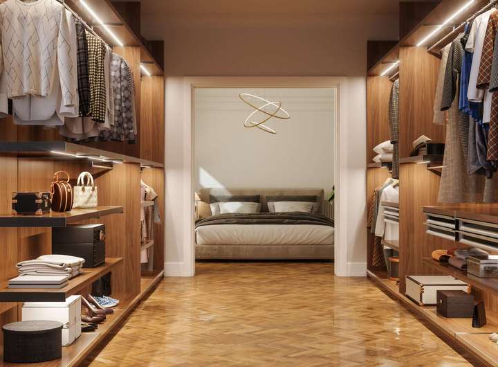 Drei Hauptschlafzimmer mit erlesenen Bädern sowie ein großes Ankleidezimmer mit der Möglichkeit, speziell angefertigte Schrankelemente einzubauen befinden sich im Obergeschoß.