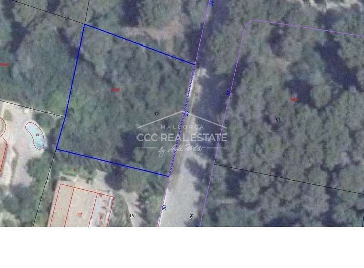 In der Wohnsiedlung Costa de Canyamel befindet sich dieses Grundstück in leichter Hanglage im eher flachen und sonnigen Teil der Siedlung.
