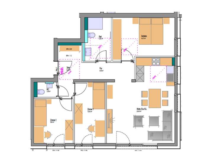 Die Hochwertig barrierefrei ausgestattete Wohnung mit ca. 87m² wird mit Fußbodenheizung beheizt. Die Wohnräume sind mit Fliesen und Eiche- Echtholzparkett belegt.