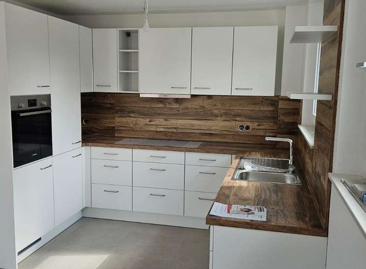 Die Wohnung verfügt über eine Küche in Vollausstattung mit Spülmaschine, Gefrier-Kühl Kombi, Backofen mit Auszug, Cerankochfeld und Dunstabzug.