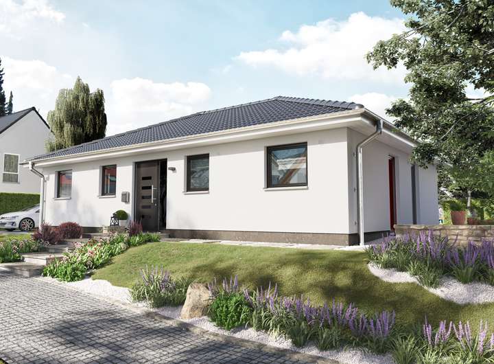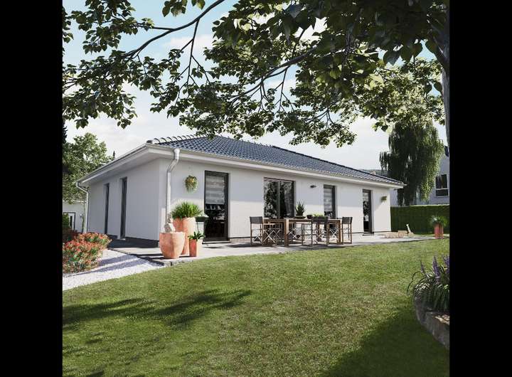Für eine Familie mit zwei Kindern ist der Bungalow 110 ein ideales Zuhause. Er bietet ein gemütliches Wohnzimmer mit Essbereich, ein geräumiges Schlafzimmer und zwei weitere Zimmer. Alle Räume sind dank großer Fenster hell und freundlich. Mit quasi einem Schritt sind Sie mit Ihren Liebsten im Garten und können die Sommerzeit bei einem Grillabend genießen.