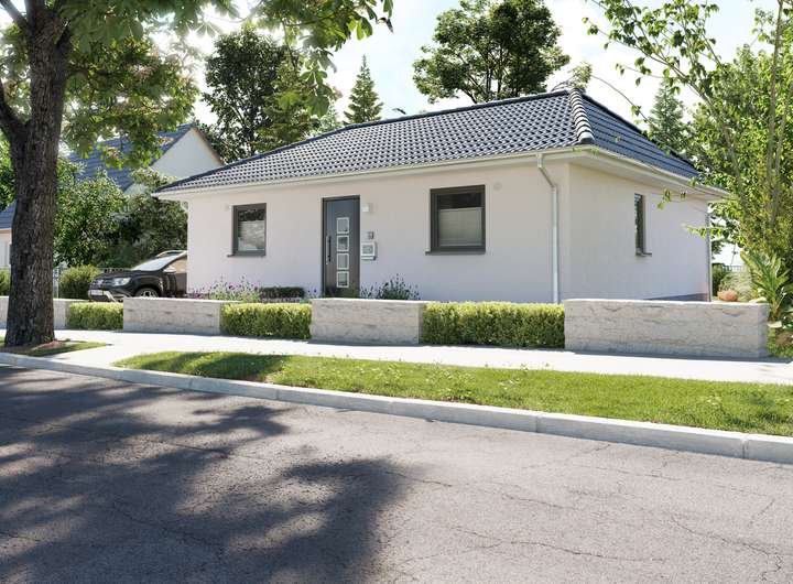 Town & Country Haus bietet eine Vielzahl an Bungalow-Varianten. Geben Sie Ihrem Bungalow 78 eine persönliche Note – ob mit Putz, Klinkerfassade oder Bauweise im Toskana-Stil. Der Bungalow 78 macht stets eine gute Figur.