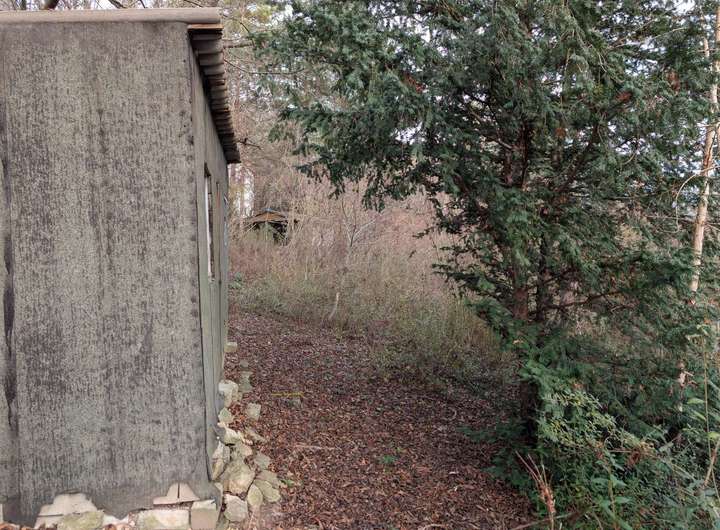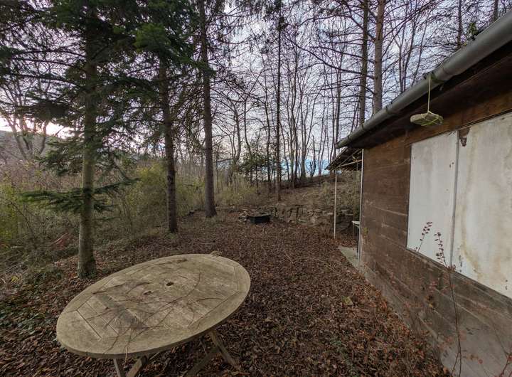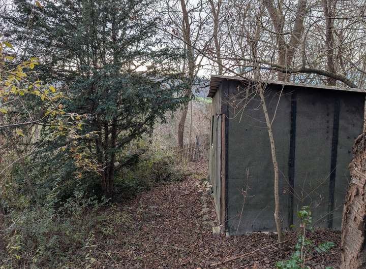 Bestehende Bebauung: Sanierungsbedürftige Gartenhütte, kleiner Schuppen mit Geräteraum und Trockentoilette