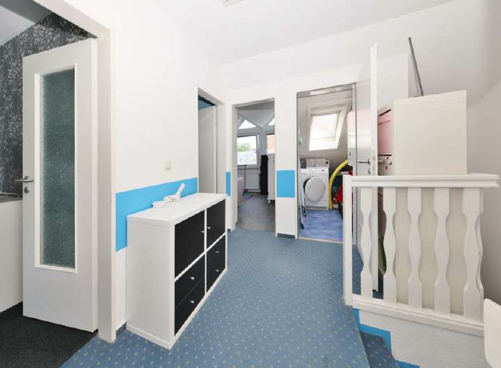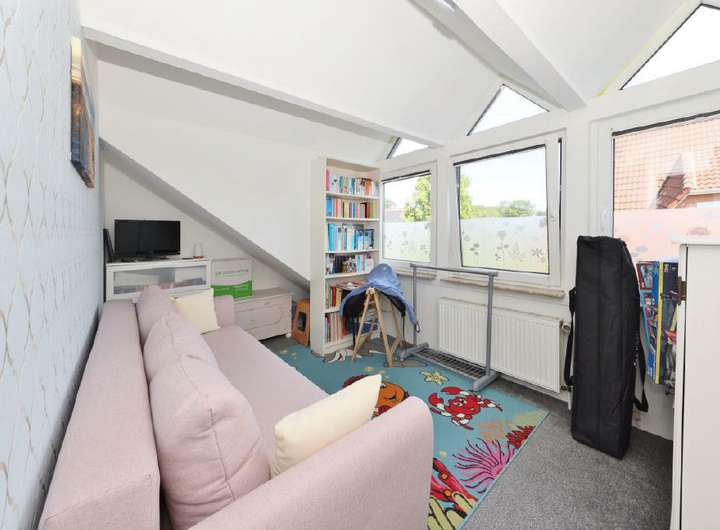 Das Dachgeschoss überzeugt durch großzügige und helle Räume. Hier bieten sich vielseitige Nutzungsmöglichkeiten - ob Schlafzimmer, Büro oder Hobbybereich. Zusätzlichen Stauraum bietet der ausziehbare Dachboden.