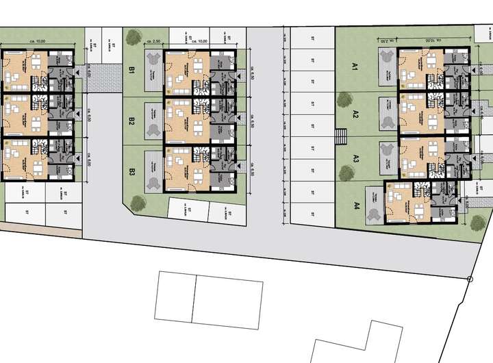 Die 10 Reihenhäuser werden in schöner Innerortslage von Oberderdingen umgeben von Gärten projektiert.
