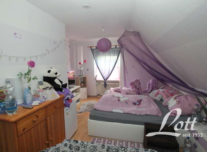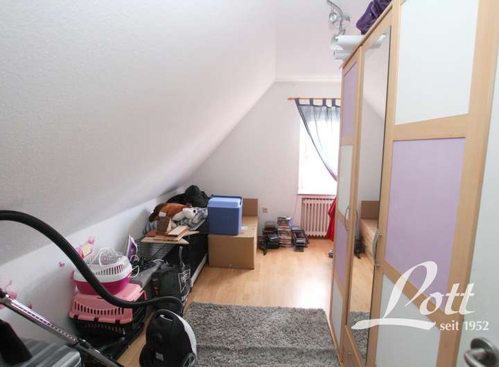 Im ausgebauten Dachgeschoss befinden sich zwei Schlafzimmer und Flur.