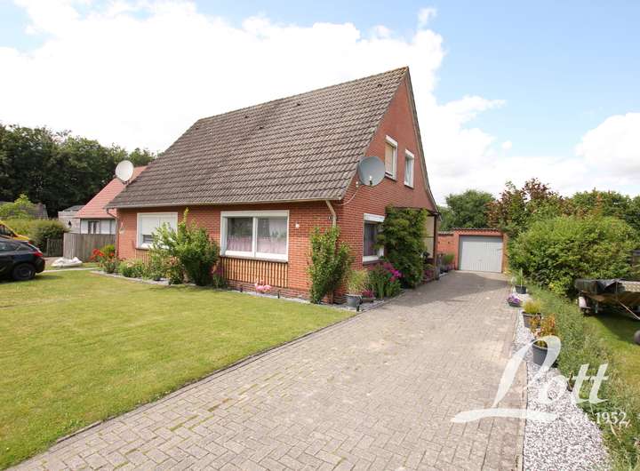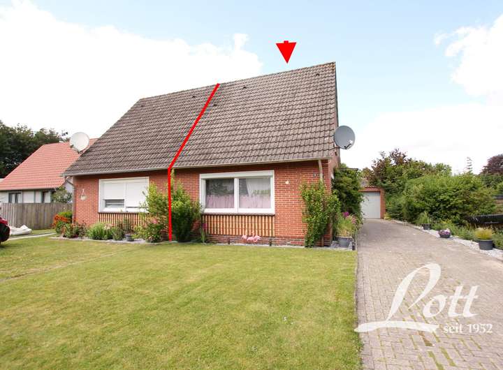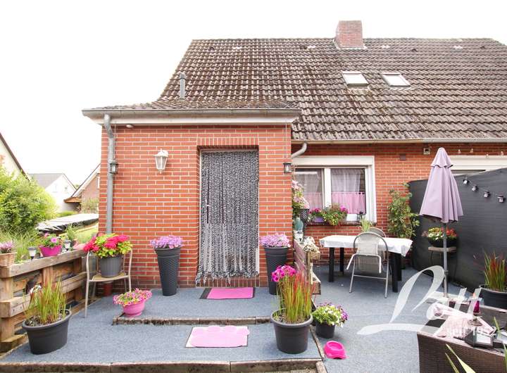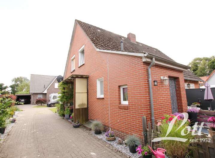 Diese teilmodernisierte Doppelhaushälfte mit mit Nebengebäude und Garage befindet sich an einer verkehrsberuhigten Sackgasse im Ortszentrum von Augustfehn.