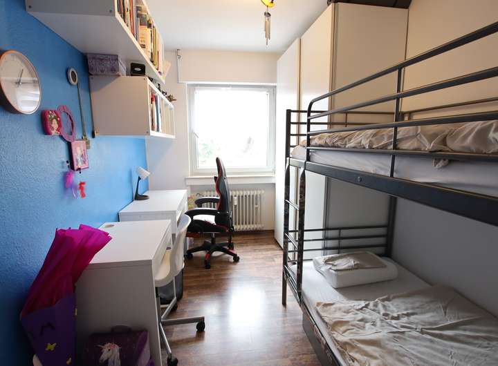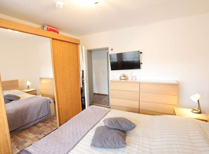 Das Elternschlafzimmer ist großzügig geschnitten und bietet genügend Raum für ein großes Bett und einen Kleiderschrank. Die beiden weiteren Zimmer eignen sich perfekt als Kinderzimmer, Gästezimmer oder Home-Office und überzeugen ebenfalls durch ihre Helligkeit und den praktischen Schnitt.